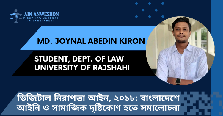 ডিজিটাল নিরাপত্তা আইন (DSA) ২০১৮ বাংলাদেশে সাইবার অপরাধ, ডিজিটাল নিরাপত্তা হুমকি এবং ব্যক্তিগত ও প্রতিষ্ঠানিক অনলাইন ক্ষতি রোধে প্রবর্তিত হয়েছিল। আইনটির উদ্দেশ্য ছিল ডিজিটাল নিরাপত্তা নিশ্চিত করা, তবে এটি ব্যাপকভাবে সমালোচিত হয়েছে তার সম্ভাব্যতা নিয়ে, যা স্বাধীন মতপ্রকাশ, মানবাধিকার এবং বাংলাদেশের গণতান্ত্রিক প্রক্রিয়াকে সংকুচিত করতে পারে। সমালোচকরা দাবি করেন যে আইনটি কর্তৃপক্ষের দ্বারা অপব্যবহারের শিকার হতে পারে, যা নাগরিক স্বাধীনতাকে হুমকির মুখে ফেলবে। এই প্রবন্ধে আইনটির প্রভাবগুলি আইনি এবং সামাজিক দৃষ্টিকোণ থেকে বিশ্লেষণ করা হয়েছে, যার মধ্যে অস্পষ্টতা, অপব্যবহার এবং স্বাধীন মতপ্রকাশের উপর শীতল প্রভাব নিয়ে উদ্বেগ তুলে ধরা হয়েছে।